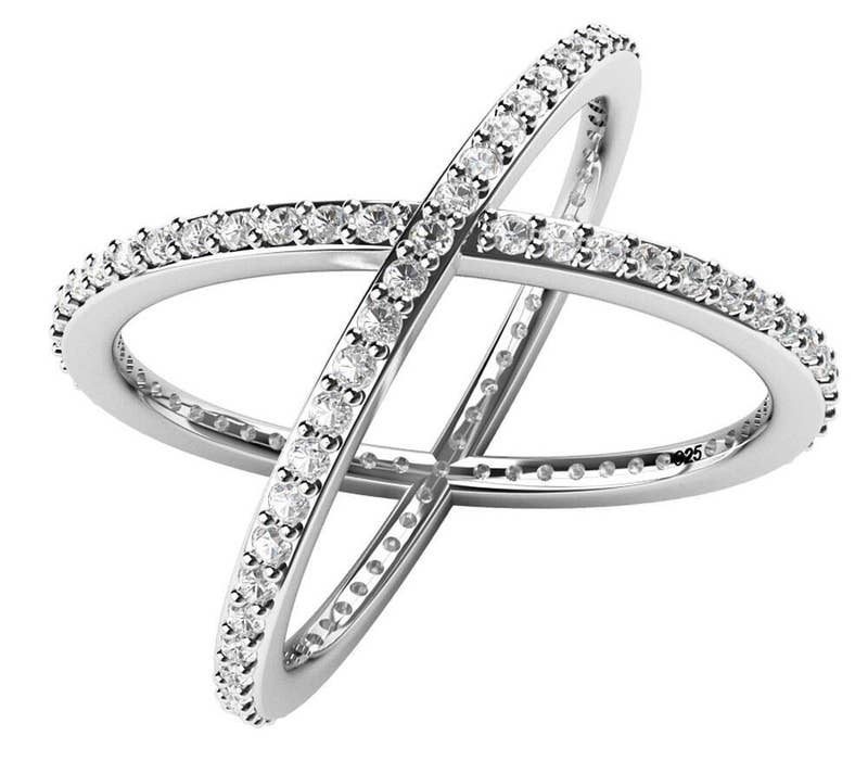 21. A cubic zirconia crisscross ring you can stack with single bands and midi rings for a full hand jewelry look. And at this price, you can stack up a ton.