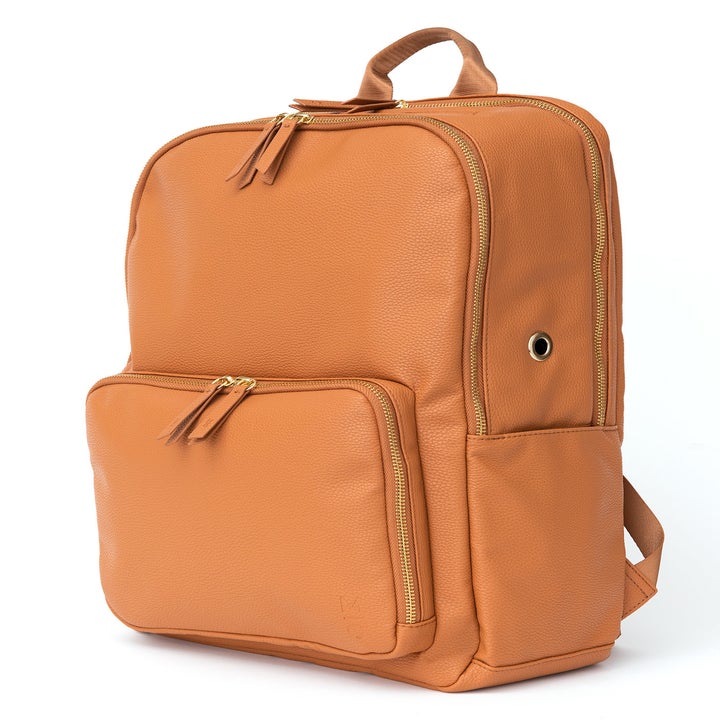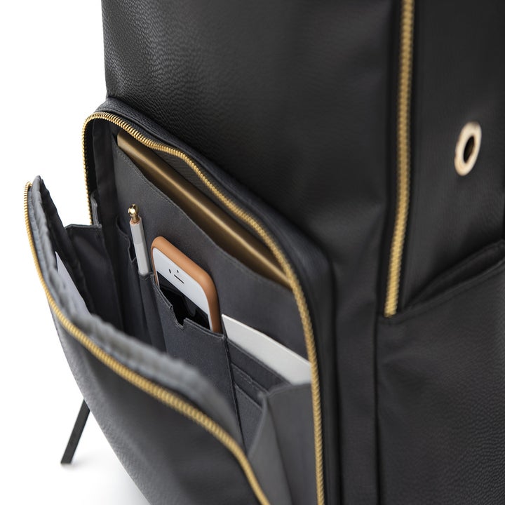 9. A vegan leather commuter backpack designed to carry alllllllllllllll your “must-haves” in style, with pockets for your laptop, tablet, writing utensils, and it even has a powerback you can use wirelessly or with a USB!