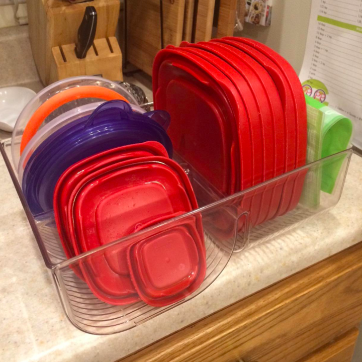 Promising review: “I’m pretty sure the lids in my cupboard all wake up when we go to sleep, planning the next morning’s revolt against us humans. They jump out at me when I open the cupboard (pre-coffee, of course) and the resulting f-bomb wakes up my entire building. This thing is like jail for your lids. Your neighbors will thank you and you’ll save money with a decrease in swear-jar donations.” —Joseph