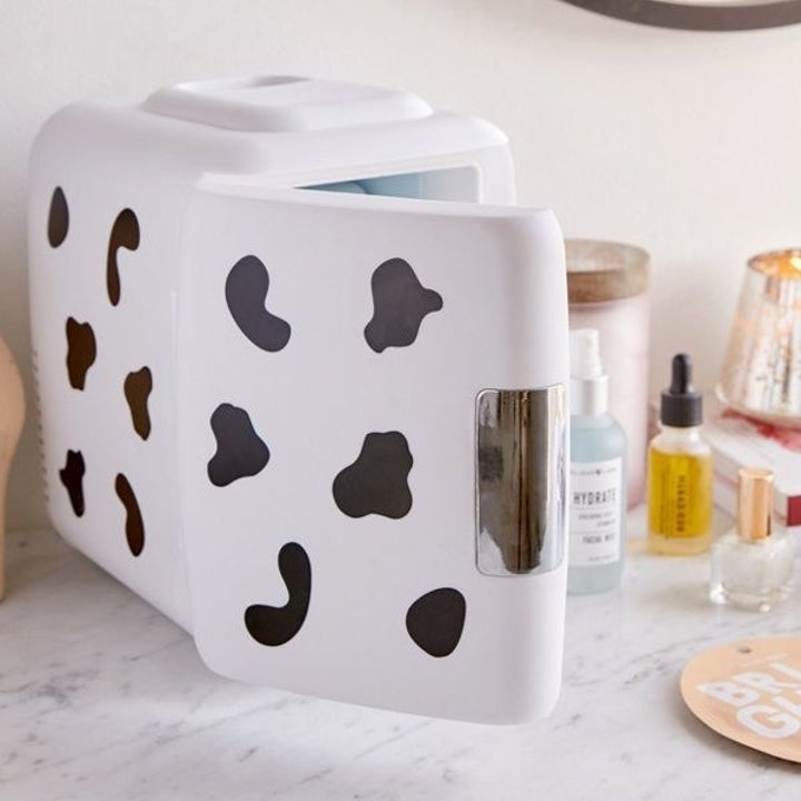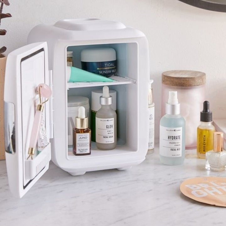 34. A mini refrigerator designed to store all your beauty and skincare products. And before you ask “but why”, keep in mind that chilling said products extends their shelf life, helps nix puffiness when applied to your skin, and prevents bacteria from building up and causing an acne onslaught.