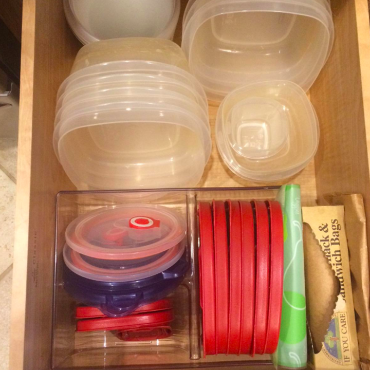 8. A lid holder that will *gasp* keep your cupboard clutter to a minimum. Say goodbye to floods of plastic falling on top of your head whenever you go to reach for the peanut butter. I’d say you’ll miss it, but you won’t.