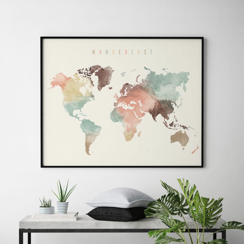 27. A watercolor world map for the travel aficionado who has Pinned a lot of images to their ~adventure~ board. Feel free to use push pins to designate the places you have visited/plan on visiting in the future.