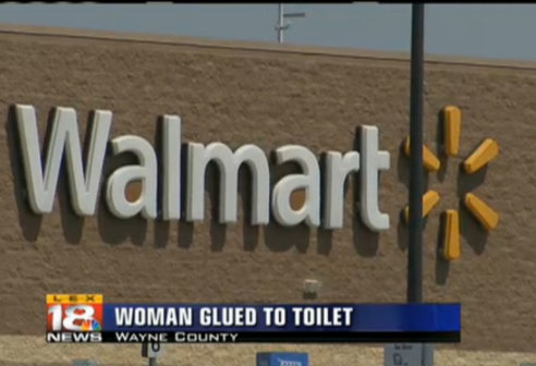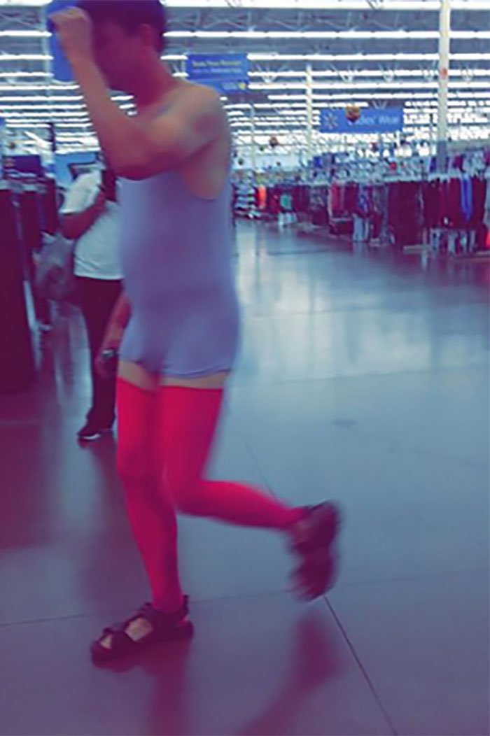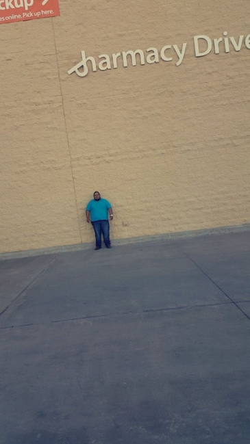 Only at Walmart do you see a guy waiting patiently for a giant P to fall on him so he can sue the store. That’s some dedication right there.