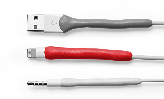 When you open a packet of Sugru, it’s totally malleable. You can use it to reinforce your charging cables or make it into any other shape that you need (like a hook for your toothbrush or a seal for a crack in your shoe). When it cures, it turns into silicone rubber! It bonds to glass, ceramic, wood, metal, plastics, and pretty much everything else.