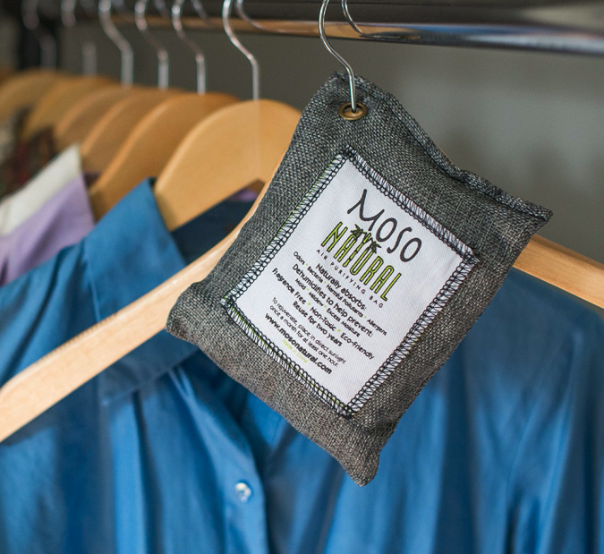They’re filled with activated bamboo charcoal which absorbs funky odors and leaves everything smelling fresh. Put ’em in your closet, car, or smelly gym shoes.