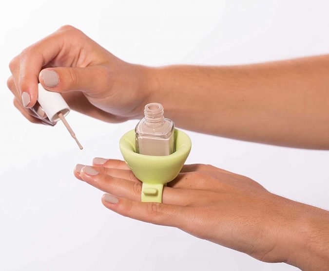 This little device is great for times that you’re painting your nails and don’t have a flat surface handy — sitting on a bed, on public transit, at the beach — you name it! Just place the Tweexy on your hand and insert the nail polish bottle, and you’re good to go.