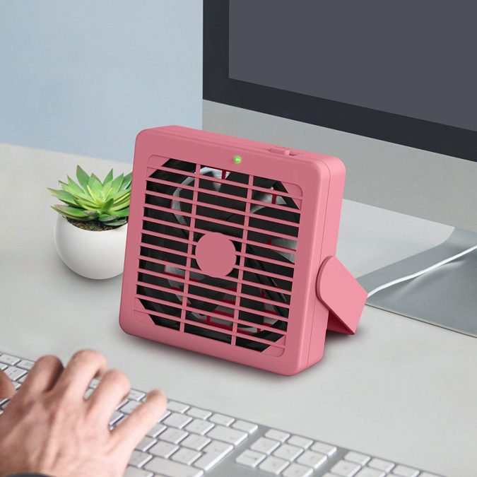 It’s cute, it doesn’t take up a lot of space, and it can provide you with some much-needed relief as you work through the heat of summer. And did I mention it comes in three different fun colors? ‘Cause it does.