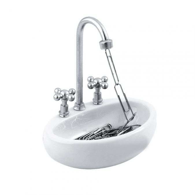 As far as office supplies are concerned, paper clips rarely get the holders they deserve. It’s always a bit of a clunky experience to grab just one. Well, this little sink and its hidden magnets allow you to keep one or more on deck while creating lovely desk art with the rest.