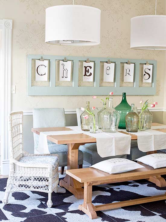 An old door, or even a shutter, can be used to create a fun accent piece in your living or dining room. This idea took an old door and some silver binder clips to make an absolutely stunning piece of decor.
