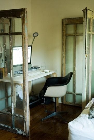 These glass doors were repositioned and used to create a closed-off little nook. It’s a room within a room without having to buy all new materials.
