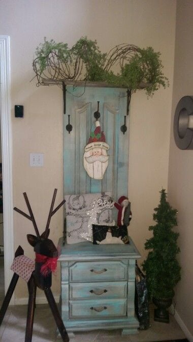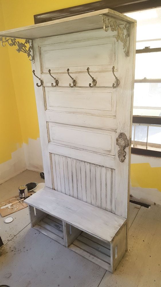 A few hooks and crates were added to this old door to make this really cool coat hanger. Could you imagine seeing this piece as you walk into a home?