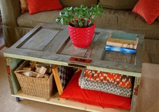Need a coffee table? Chop up a door, put it back together again in the shape of a box, and add some casters to it. The possibilities are endless!
