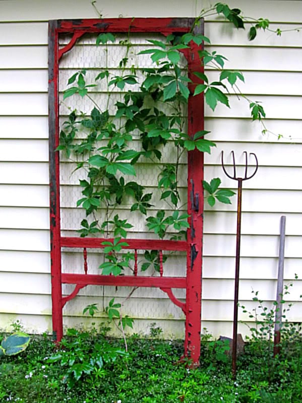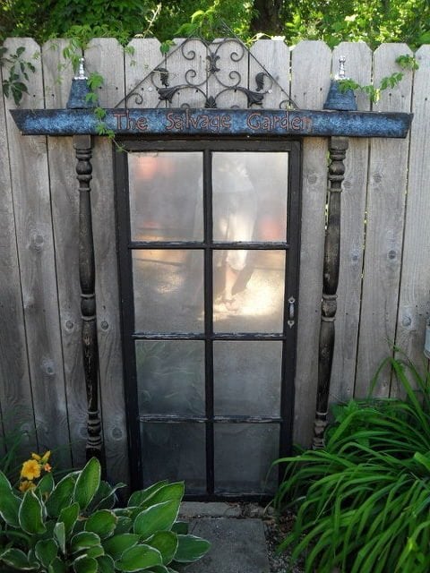 The frames of this door were salvaged and repurposed into a garden trellis. Plant ‘climbing plants’ nearby and watch it transform into a whimsical piece.