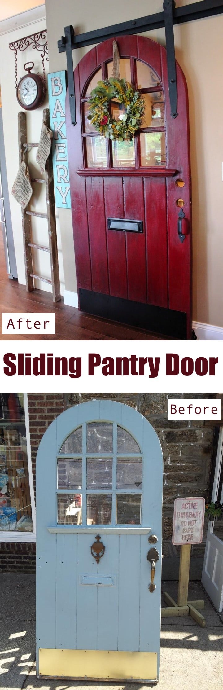 Attach the old door to a track and add some rollers to the bottom to make a perfect sliding pantry door. Take the ‘barn door idea’ to the next level.