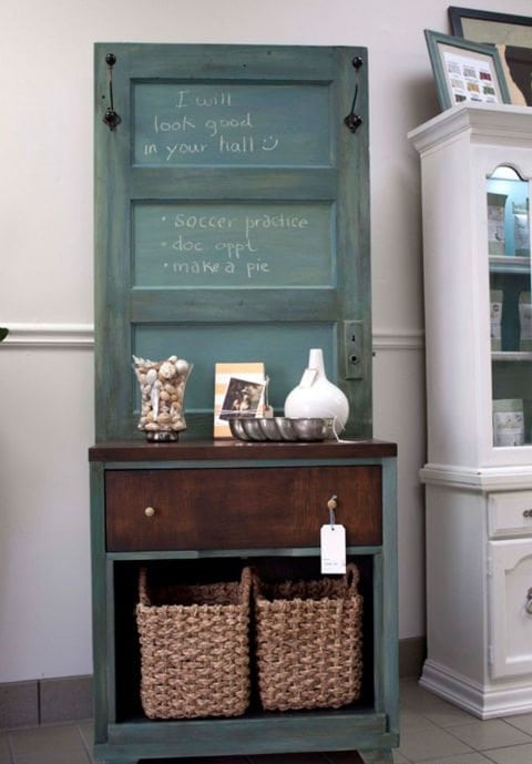If you hang a door and use some chalkboard paint, you can turn a door into your family’s message board. Just paint the partitions and you have a super cute piece.