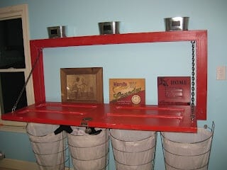 Need a place to toss random things on when you come into the house? Affix a door to a shelf or chest, and paint them the same color. Learn how to make the one below here.