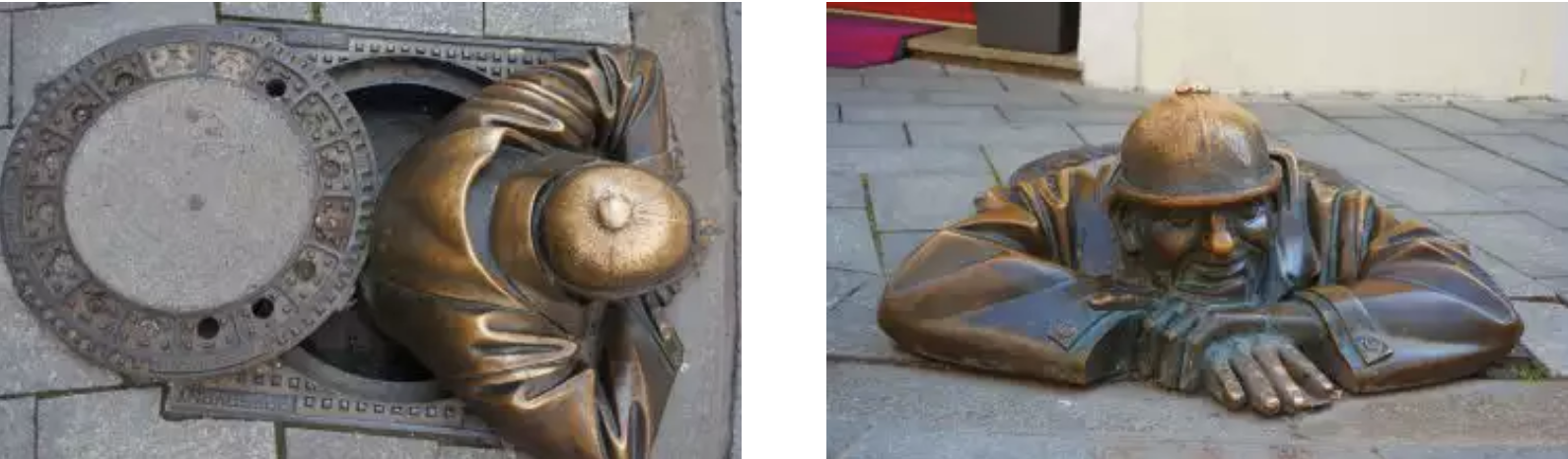 Čumil, a.k.a. The Watcher, is located in the Old Town of Bratislava, Slovakia. The sculpture depicts a man at work peeking out of a manhole. Some say that if you make a wish that you keep secret while touching the man’s head, it will come true.