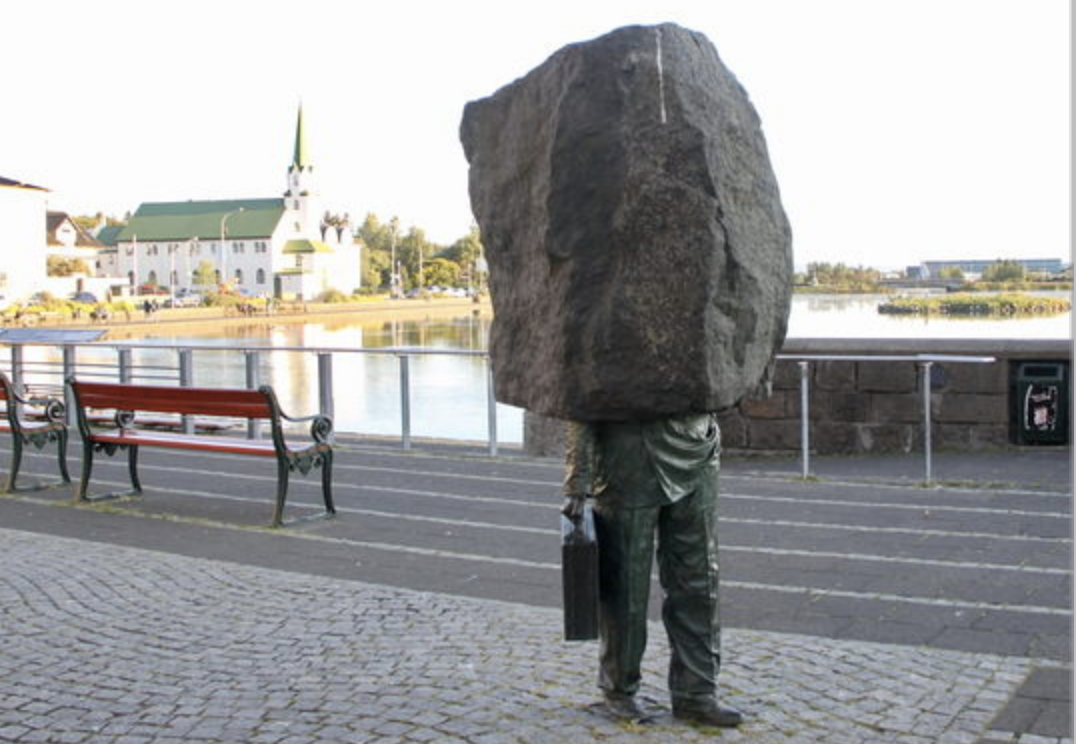 The Unknown Official pays homage to the nameless city officials. It was sculpted by Magnús Tómasson in 1994. It’s located in Reykjavik, Iceland.