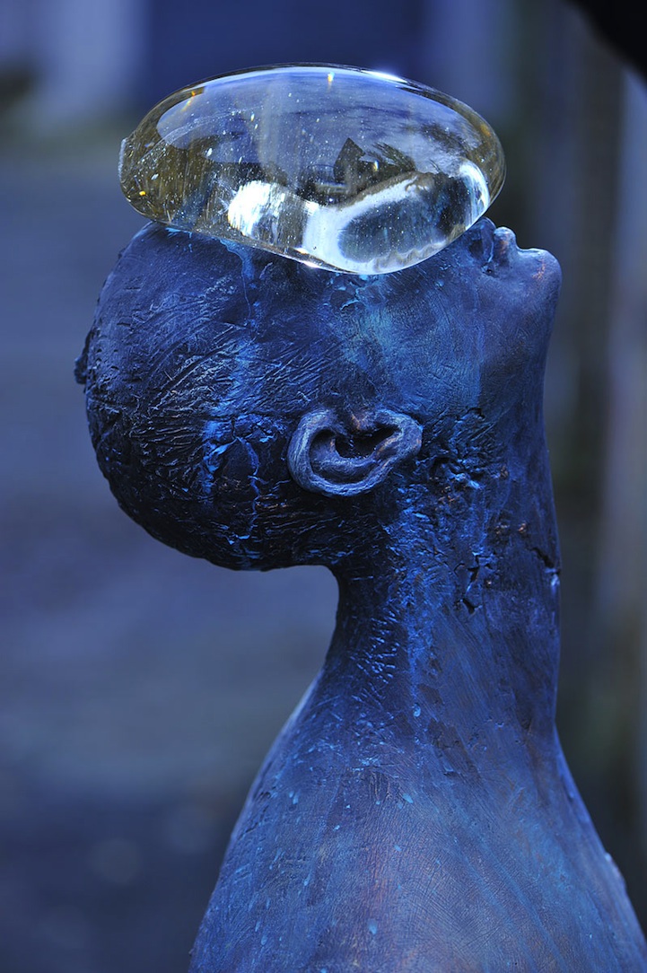 Rain is a 6-foot-tall sculpture made of bronze and glass. It depicts a big raindrop over the figures face and was created by Ukranian artist Nazar Bilyk. Bilyk says the sculpture is meant to show man’s inner dialogue with himself