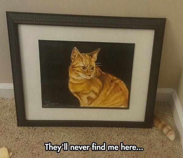This cat is really good at playing hide-and-seek. I mean, really good. The tail almost seems like it’s apart of the painting.