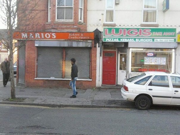 There are so many funny aspects about this picture. The fact that two Italian businesses are right next to each other and called Mario and Luigi. But also that Mario is red, like his character in the video game, and Luigi is green.
