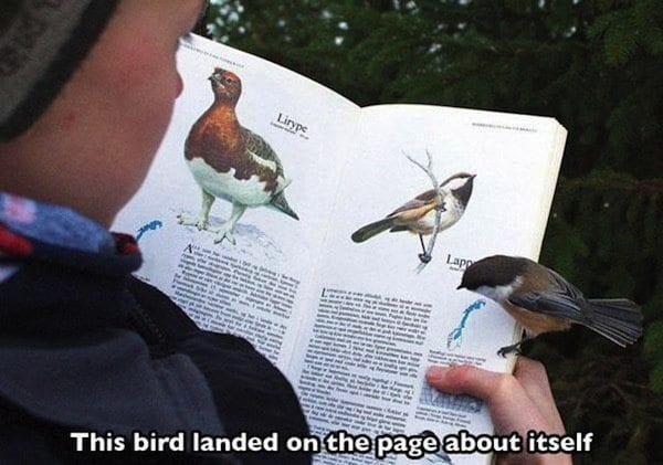 This bird is into self knowledge. He landed on a page about his species of bird. And he looks pretty interested in what he’s reading.
