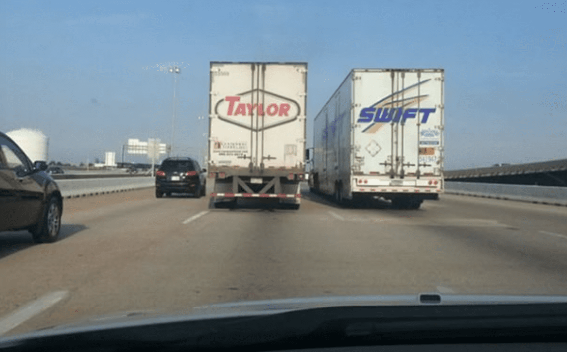 This person driving behind them must have been so satisfied seeing this. Taylor Swift is so great her name should be plastered on the side and back of all trucks. She is truly an icon.