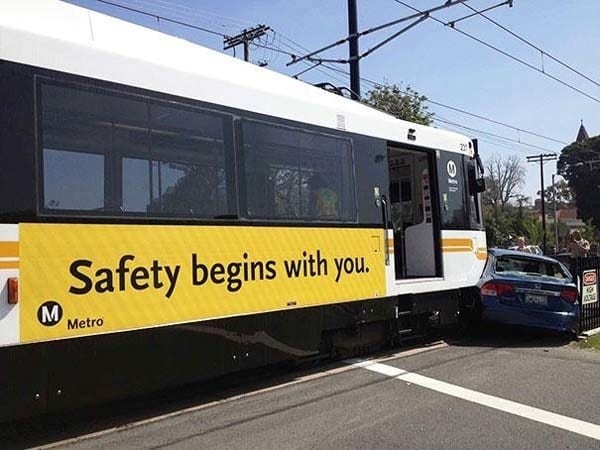 This guy didn’t read the sign. Now the side of his car include a bus. Maybe he didn’t understand the “you” part.