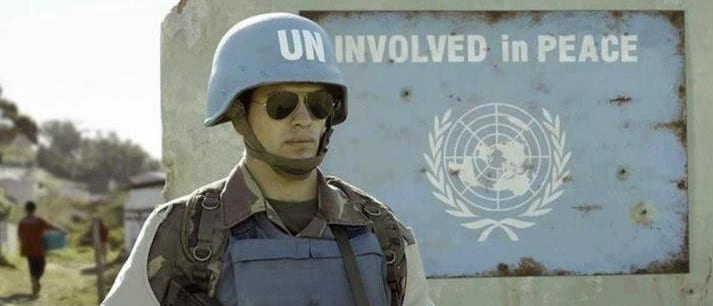 This movie poster ended up with some interesting placement when they chose these display boards. It looks like the actor is wearing a funny little hat in each one.