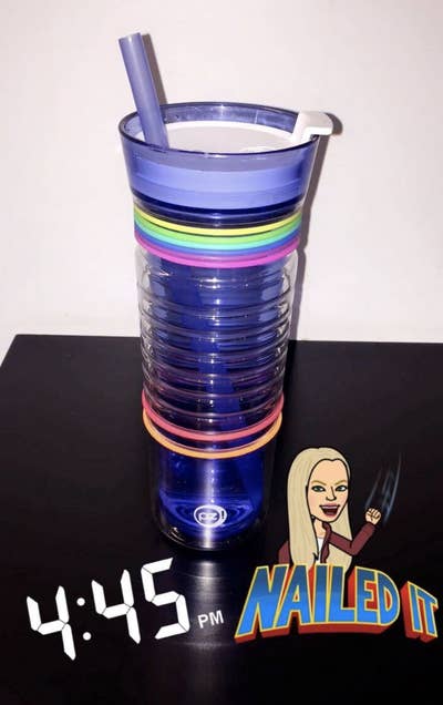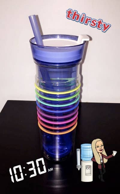 Here’s how it works: You fill the tumbler with water and once you drink it all you slide one of the bands up to the top, refill, and repeat until you’ve drunk your daily recommended amount (or more). Easy peasy! My big problem was that I’d get busy and simply forget to drink, but having a visual way to track my progress throughout the day is so helpful. I used to barely finish one measly 16 oz. bottle, but now I’m consistently drinking at least the minimum recommended amount of water per day. (Sometimes I even drink way more!)