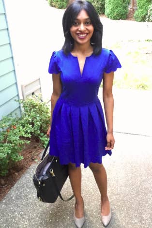 21. A scalloped trim dress here to prove that wanting a dress that’s perfect for both the office and a party isn’t mollusking for too much.