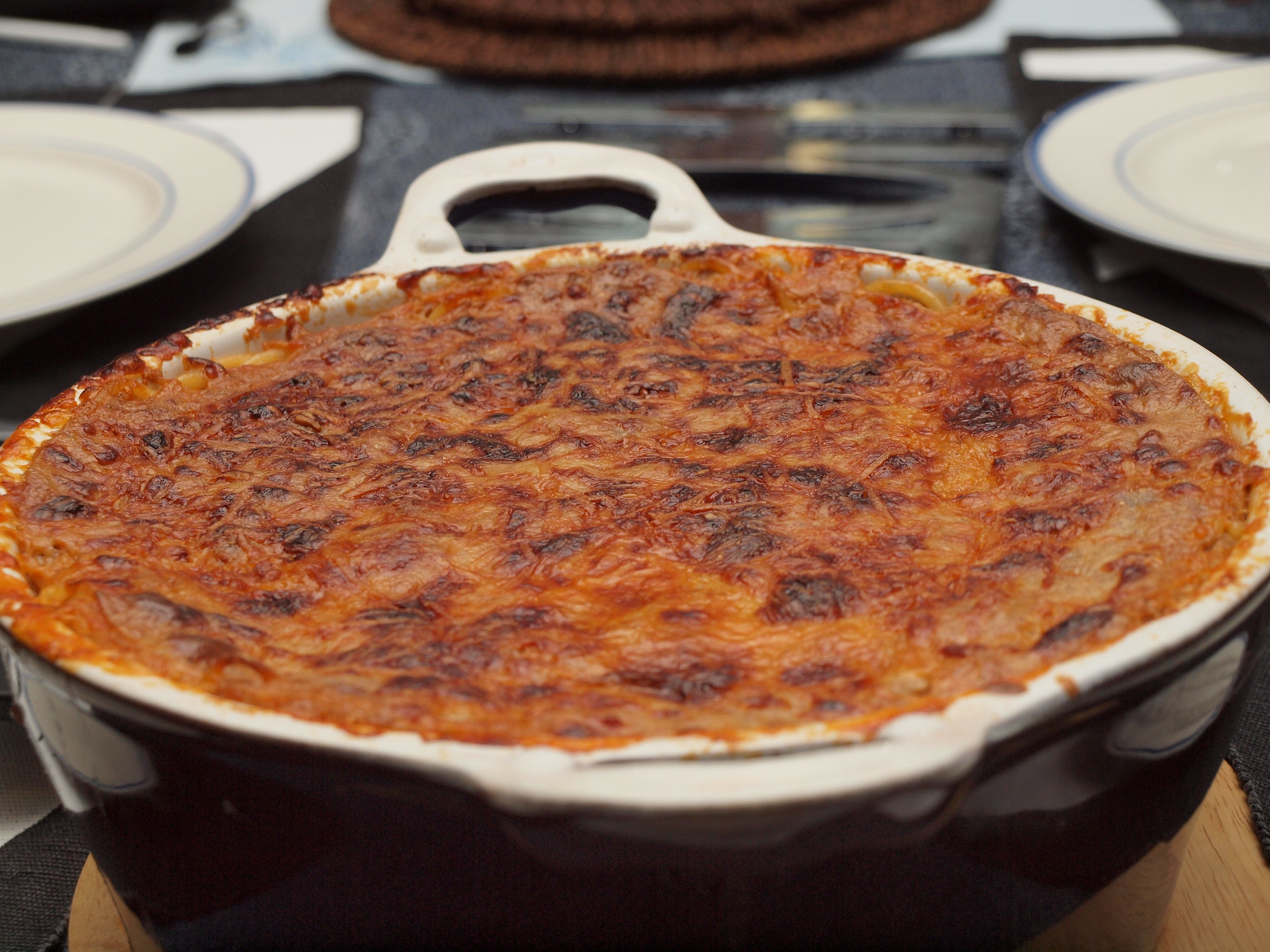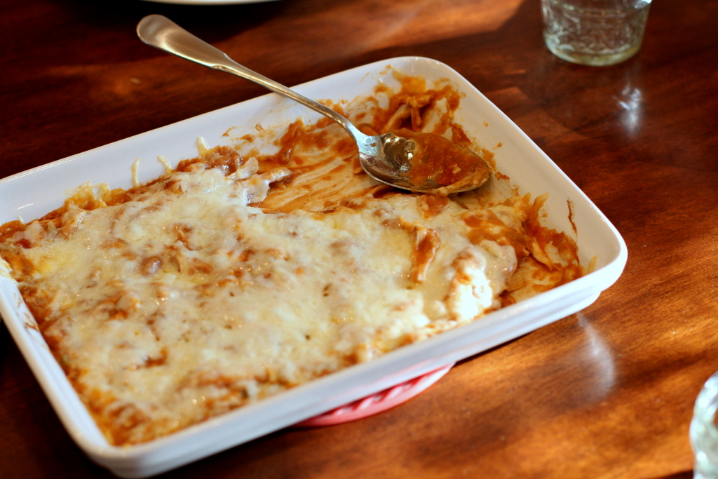 8. Pour the rest of your tomato sauce on top before covering and baking for 45 minutes.