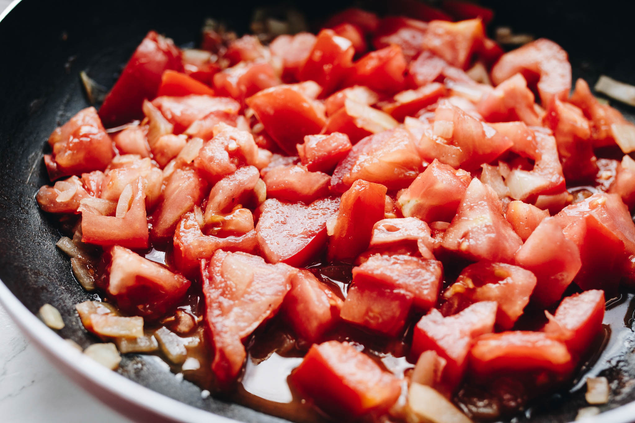 4. Stir in your onion, bell pepper, tomatoes, water, rice, chile sauce, salt, brown sugar, cumin, Worcestershire sauce and a pinch of black pepper.