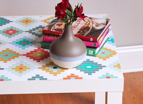 Is your table looking tired and beat up? It might be time for a makeover. You can paint it a brand new color or just spruce up the table top with a stencil design or a layer of peel and stick vinyl or woven wallpaper. Just make sure the surface is easy to clean!.