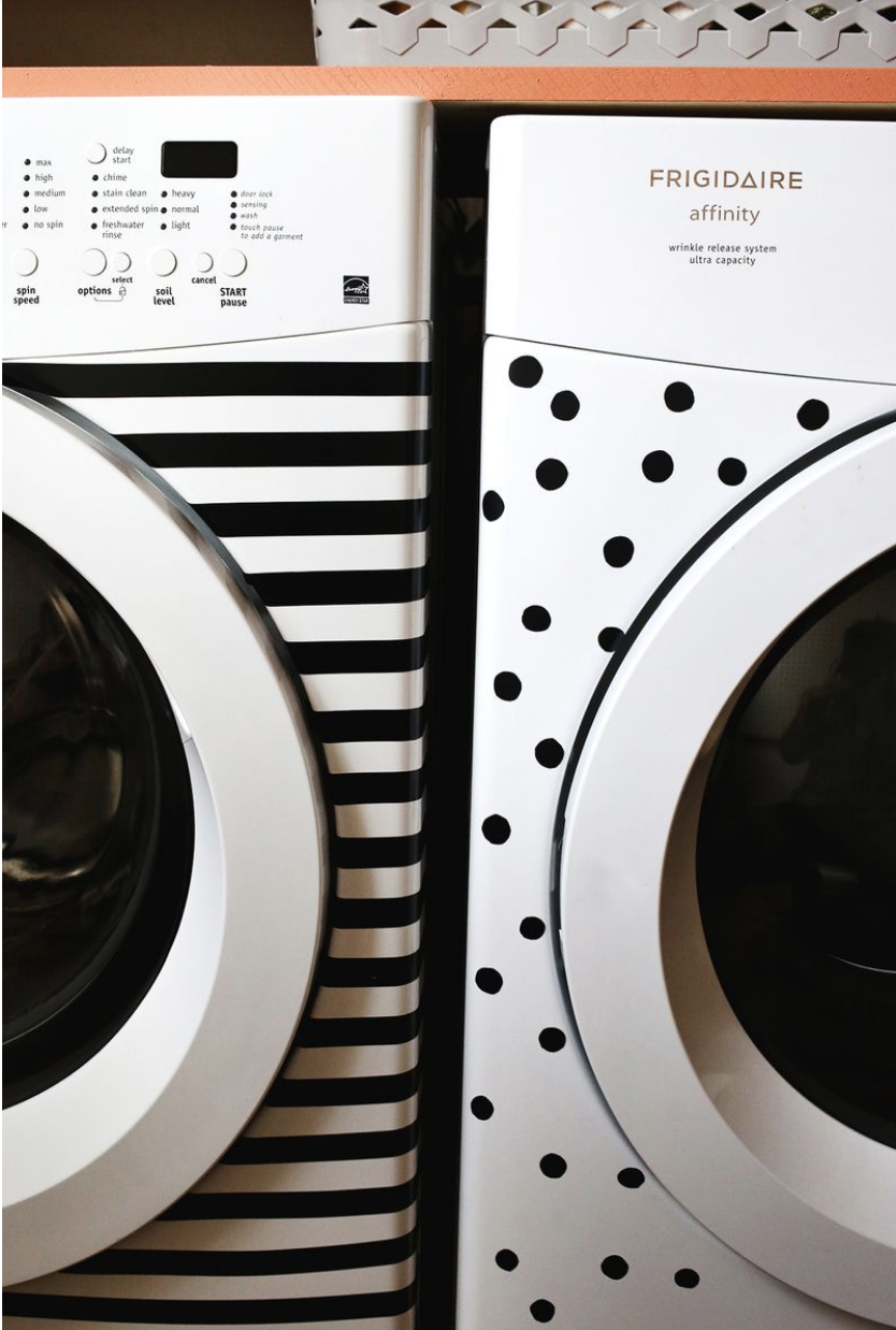 Is your washing machine and dryer looking like a boring eyesore? Spruce it up with some washi tape. You can also take it off if you get sick of the design.