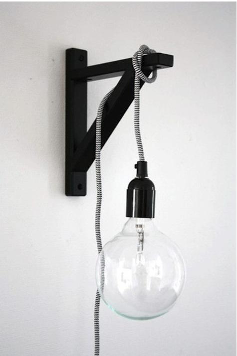 You can also create hip inexpensive lighting with a shelf bracket. Just hang a light bulb and wire from it. It will also save space.