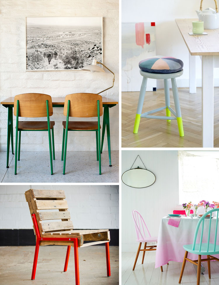 If everything else in your house is going to look cool don’t forget about your chairs! Paint them a fun color too. You can dip the legs in some paint or just pain the chair tops.