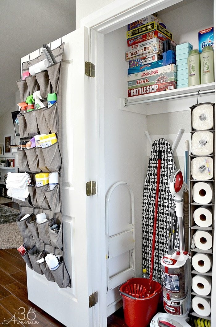 Hanging shoe organizers might look a little silly, but you can cleverly hide them by hanging them on the inside of a door closet. Aside from shoes, it turns out that these are also ideal to store all kinds of household products such as cleaning products, towels, and much more.