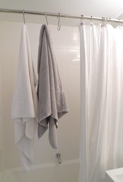 You could always just throw towels on the rack, but adding a simple S-hook can clean up the bathroom in a formidable way. It’s definitely one of the more simple things to do in this list – but it works and it’s as easy as 1-2-3. Just hang some S-hooks on your shower rod, and you’re done!