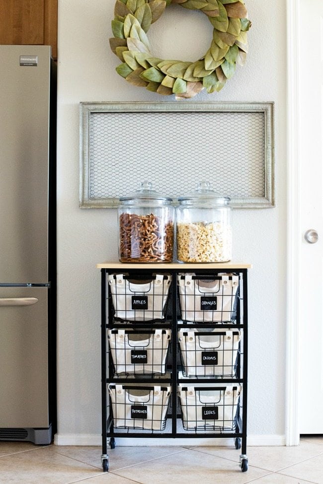 Because of the way they’re designed, refrigerators will almost always have some additional space near the wall that’s left unused. Using a slide-out storage rack – which you can build yourself if you want to – to place all kinds of items that are essential in the kitchen but don’t need to be cooled is absolutely genius.