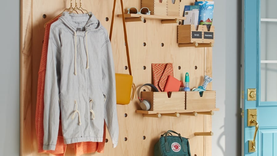 This great idea shines in its simplicity. Instead of having your shoes collect dust on the floor – where it’s likely that they’re going to get in the way – let your kicks just ‘float’ in the air by using shoe pegs.