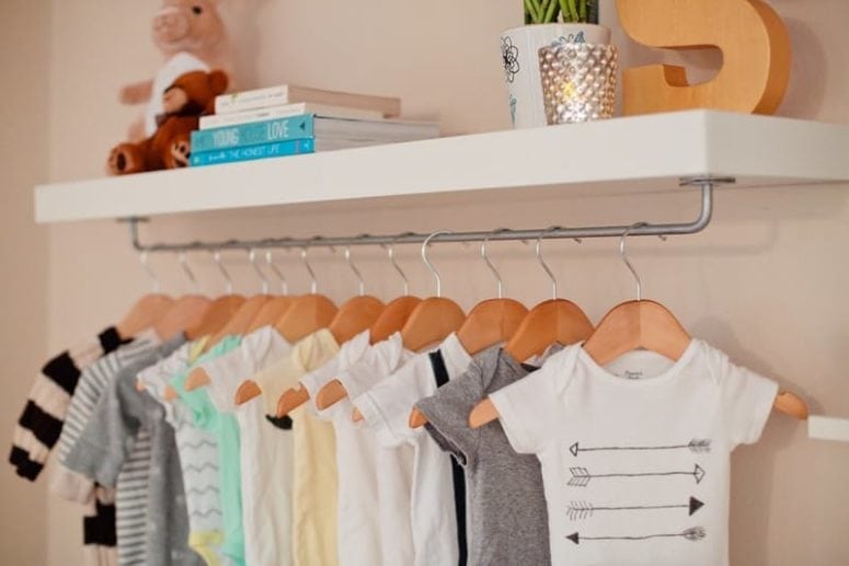 What better way to use some space below shelves by adding a large bar to store your most-worn clothes? It’s an elegant and efficient solution, but make sure not to put too much extra weight on the shelf, just in case.