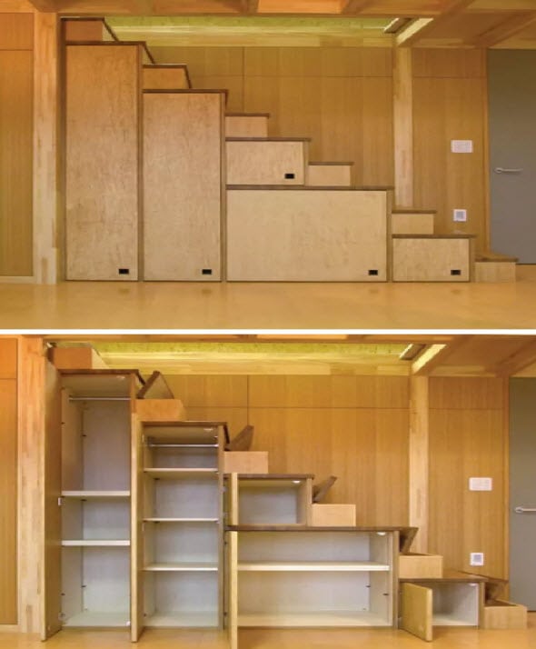 If your apartment has a staircase, you could definitely consider maximizing the amount of useable room underneath. Staircase storage is simple, out of view and doesn’t add any additional clutter. In some cases, there’s even enough room underneath to fit a desk and a computer!