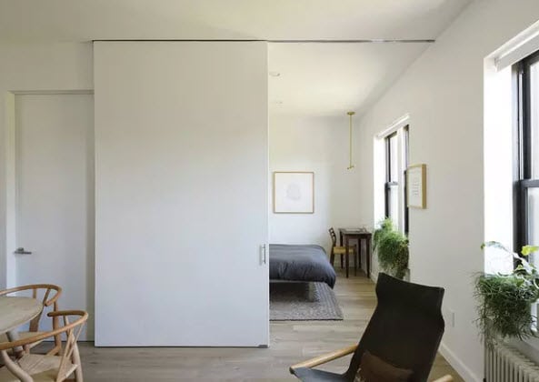 Making your apartment feel and look more spacious is definitely an option to consider as well. This apartment in Brooklyn, for example, uses large and wide sliding doors (or sliding walls, depending on how you’d like to call them) which immediately gives the place a more open and larger impression.