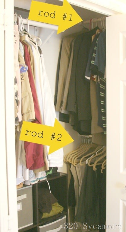 It’s simple mathematics really, two is better than one. Relocate your rod in the closet and place it considerably higher, and just grab another one to hang lower. It might take some time until you’ve repositioned the rods, but the obvious space-saving boost is absolutely worth it.