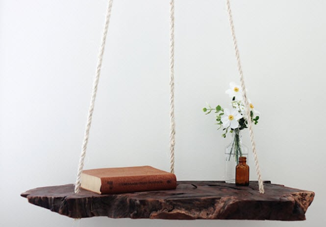 If you don’t want to use a piece of furniture such as a bedside table for example, and you aren’t keen on attaching shelves to the wall, there’s another option just for you. Suspended shelves look cool, classy, modern and you can’t deny that they’re not space-saving. Just figure out where you should position them best so that they don’t get in the way, and you’ve got yourself a perfect spot for all kinds of items.