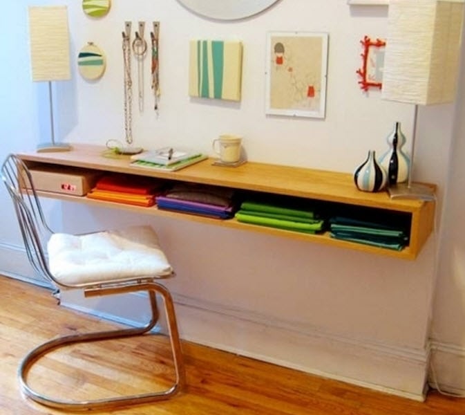 Floating furniture seems like it’s becoming more and more popular, and for good reason. You can free up a whole bunch of vertical space, which also immediately gives the impression and illusion of a larger room. A floating, wall-mounted desk is just absolutely perfect if all you need in a desk is a spot to put your laptop on.