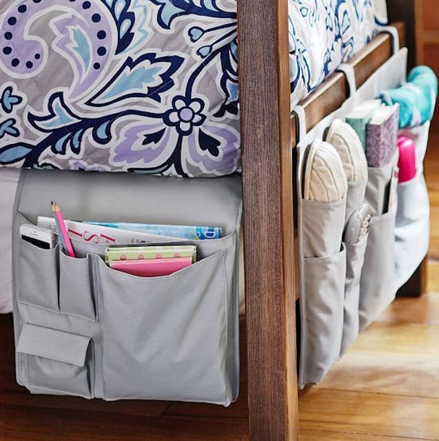 These type of organizers are often seen in workspaces or kitchens, but they can be used for some additional storage at the bedside as well! A perfect solution to store your slippers, nighttime books or other items when you’re not using them.