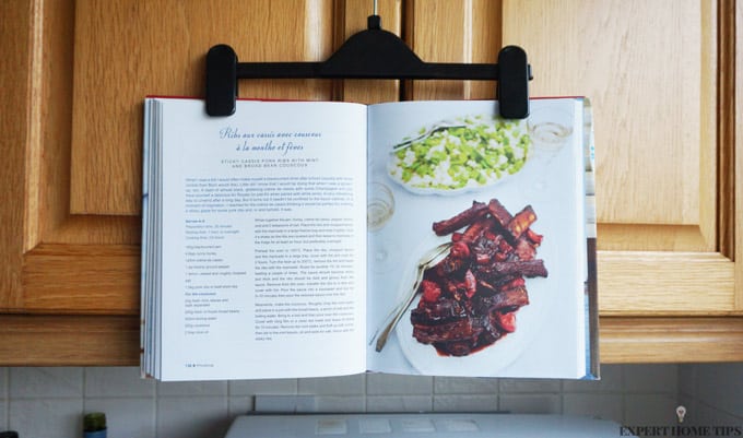 It’s always annoying when you’re trying to follow a recipe and your cookbook won’t stay open. To keep your cookbook secure, make a simple cookbook stand using an old skirt hanger. The clips on this hanger are nice and sturdy, and they’ll make it easy for you to read the instructions for your recipe.