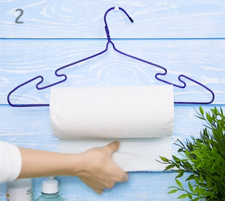If you need a new paper towel holder for your kitchen, try making one out of a wire hanger. Cut the bottom bar of the hanger, and slide your paper towels on. Then, hang the paper towel holder up in your kitchen using the coat hanger’s hook.